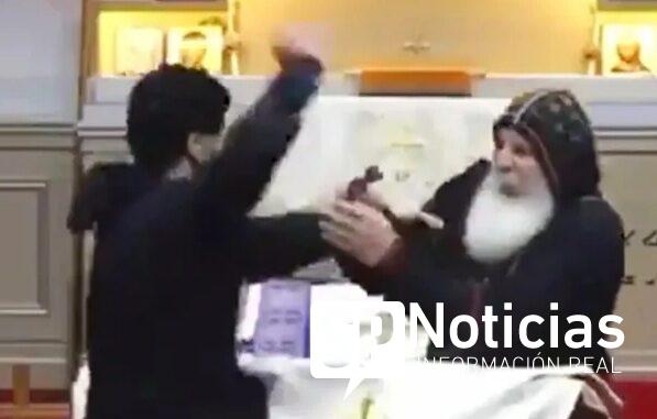 En el vídeo se observa como un hombre vestido de negro se acerca al altar y apuñala al sacerdote en repetidas ocasiones, mientras los feligreses se acercan a socorrer al religioso.